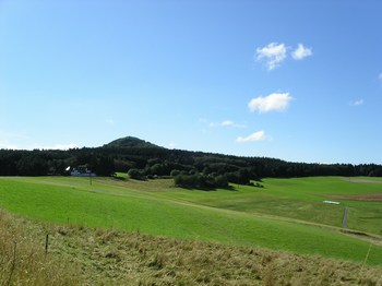 Kegel der Hohen Acht von der Bundesstrasse 412 zu sehen |